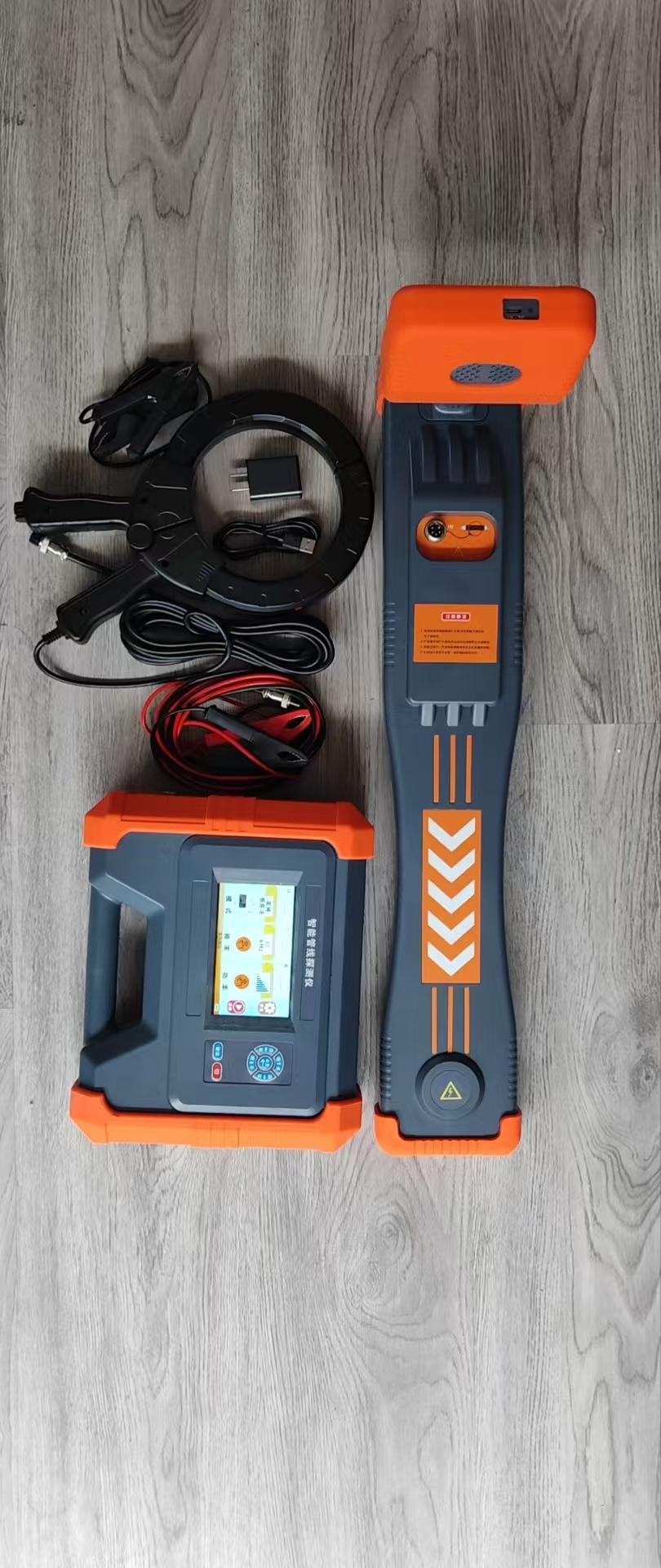 發(fā)射鉗:適用于卡鉗耦合法。發(fā)射鉗將發(fā)射機發(fā)出的信號耦合到目標電纜上,鉗口尺寸Φ125mm,發(fā)射鉗具有方向性,發(fā)射信號從發(fā)射鉗上箭頭指示方向流入。